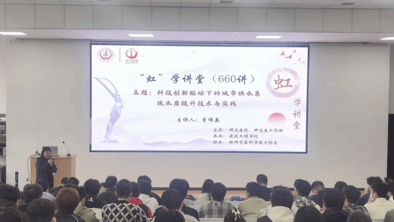 10月10日下午,由研究生院、研究生工作部主办,建筑工程学院承办,校研究生科学技术协会协办的“虹”学讲堂第660讲在南校区西院综合楼报告厅举办。同济大学李伟英教授作题为“科技创新驱动下的城市供水系统水质提升技术与实践”的报告,相关学院共180余名师生参加讲座。