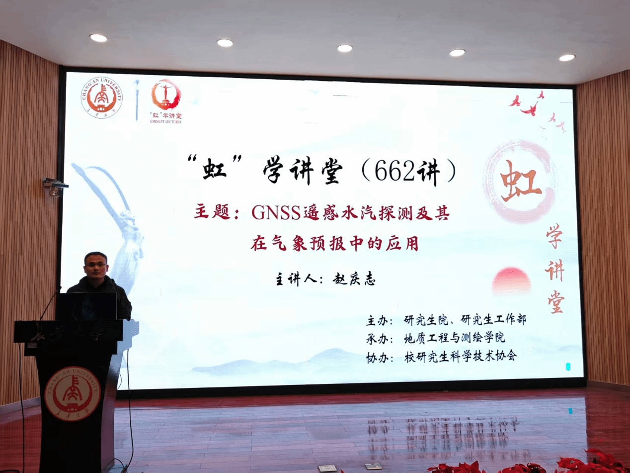 10月13日上午,由研究生院、研究生工作部主办,地质工程与测绘学院承办,校研究生科学技术协会协办的“虹”学讲堂第662讲在南校区东院伯声报告厅举办。西安科技大学赵庆志教授作题为“GNSS遥感水汽探测及其在气象预报中的应用”的报告。地质工程与测绘学院李盼教授主持报告会,相关学院共100余名师生参加讲座。