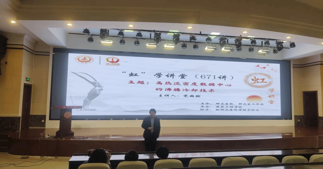 11月3日下午,由研究生院、研究生工作部主办,建筑工程学院承办,校研究生科学技术协会协办的“虹”学讲堂第671讲在南校区北院学术交流中心举行。日本福井大学党超镔教授作题为“高热流密度数据中心的沸腾冷却技术”的报告,建筑工程学院谷雅秀教授主持报告会,相关学院共280余名师生参加讲座。