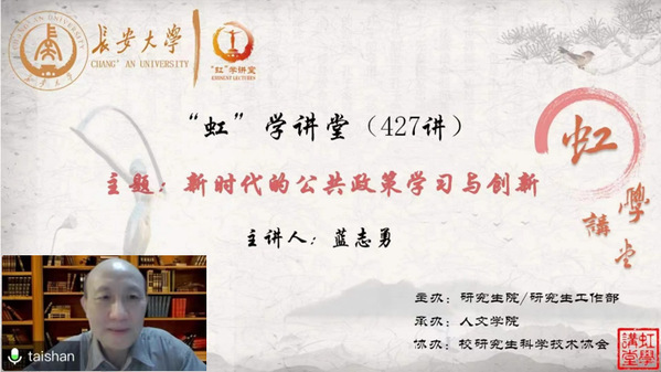 3月7日晚,由研究生院/研究生工作部主办、人文学院承办、校研究生科学技术协会协办的“虹”学讲堂第427讲以线上讲座形式顺利举办。清华大学蓝志勇教授作了题为“新时代的公共政策学习与创新”的报告,相关学院共300余名师生参加讲座。