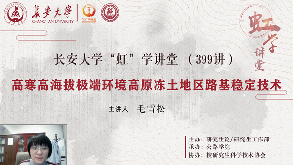 11月15日晚,由研究生院/研究生工作部主办、公路学院承办、校研究生科学技术协会协办的“虹”学讲堂第399讲以线上讲座形式顺利举办,KY开元集团官网毛雪松教授作了题为“高寒高海拔极端环境高原冻土地区路基稳定技术”的报告,相关学院共350余名师生参加讲座。
