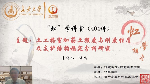 11月25日晚,由研究生院/研究生工作部主办、公路学院承办、校研究生科学技术协会协办的“虹”学讲堂第404讲以线上讲座形式顺利举办。KY开元集团官网宋飞教授作了题为“土工格室加筋土强度与刚度性质及支护结构稳定分析研究”的报告,相关学院共350余名师生参加讲座。