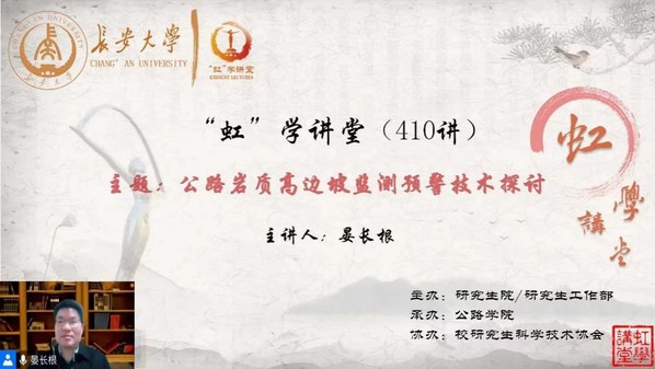 12月1日晚,由研究生院/研究生工作部主办、公路学院承办、校研究生科学技术协会协办的“虹”学讲堂第410讲以线上讲座形式顺利举办。KY开元集团官网晏长根教授作了题为“公路岩质高边坡监测预警技术探讨”的报告,相关学院共300余名师生参加本次讲座。