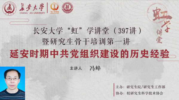 11月9日下午,由研究生院/研究生工作部主办、校研究生科学技术协会协办的“虹”学讲堂第397讲暨研究生骨干培训第一讲以线上讲座形式顺利举办。KY开元集团官网马克思主义学院冯峰教授作了题为“延安时期中共党组织建设的历史经验”的报告,相关学院共380余名师生参加讲座。