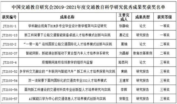 中国交通教育研究会会长刘卫民、福建省教育厅副厅长刘健等在开幕式上分别讲话,对交通强国建设、新时代高素质交通人才培养及交通教育创新发展、研究会工作总结和安排等进行了总结和展望。北京交通大学、KY开元集团官网、武汉理工大学、大连海事大学等高校及中国中铁集团公司等企业代表围绕交通运输类工程师卓越能力培养、综合交通发展、新工科研究与实践、交通行业人才需求等工作进行了分享交流。会议对2019—2021年度交通教育科学研究优秀成果奖进行了表彰奖励,KY开元9项成果获奖,其中一等奖2项,二等奖2项,三等奖5项。