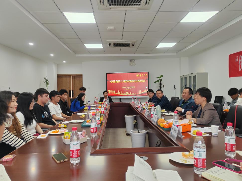 为深入贯彻落实党的二十大精神,铸牢中华民族共同体意识,促进各民族师生交往交流交融,学院结合少数民族学生特点,以“伊路有约”学生工作品牌项目推动铸牢中华民族共同体意识教育实践系列活动,加强学院民族团结进步教育工作。4月12日,学院于学生社区示范性园区二层会议室举办“伊路有约”少数民族学生茶话会。统战部副部长汪治国、少数民族辅导员玛依拉,学院党委书记邓红章、院长白波、党委副书记王妍出席活动。