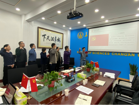 活动最后,两个支部为党员过政治生日。陈俊鹏和闫永刚宣读此次政治生日的党员名单,并发放生日贺卡。王成带领大家重温入党誓词。