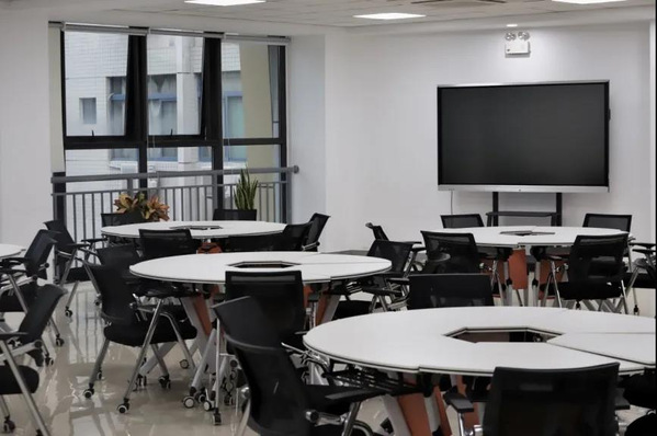 大厅位于朝晖园学生公寓9号楼与10号楼之间,建筑面积约2500m²。崭新的课桌椅、精致的文化墙、漂亮的花卉盆栽营造了开放自由、智慧时尚、锐意进取、情兼趣雅的学习生活氛围,助力实现“一墙一物会说话,一草一木皆育人”的社区文化浸润功能。办事大厅、多功能自习室、党员活动室、团体活动室、交流研讨室、学生社区“悦读空间”等空间的开放,拓展了学生公共服务空间、提升了文化氛围、激发了校园活力。未来,学业辅导室、生涯规划指导室、学生社区心理辅导站、秦疆情少数民族学生工作室、学生自助服务区、咖啡厅等场地的投入使用更将让这里成为集生活、学习、交友、学术交流、文化育人功能于一体的教育生活园地,促进学校实现服务、文化、环境等全方位一流目标,全力推进三全育人,落实十大育人体系。