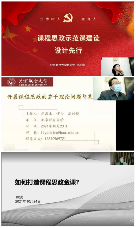 第一部分,由北京联合大学林妍梅副教授主讲《课程思政示范课建设,设计先行》。她结合教育部相关文件精神,指出课程思政建设的三个要点,一是弄清“干什么”,确保“抓准”,二是找准“怎么干”,确保“抓实”,三是做实“谁来干”,确保“见效”。随后,通过“提高课程建设站位”、“明确课程建设逻辑”、“掌握教学设计方法”、“形成课程建设成果”介绍了示范课建设的思路和方法。