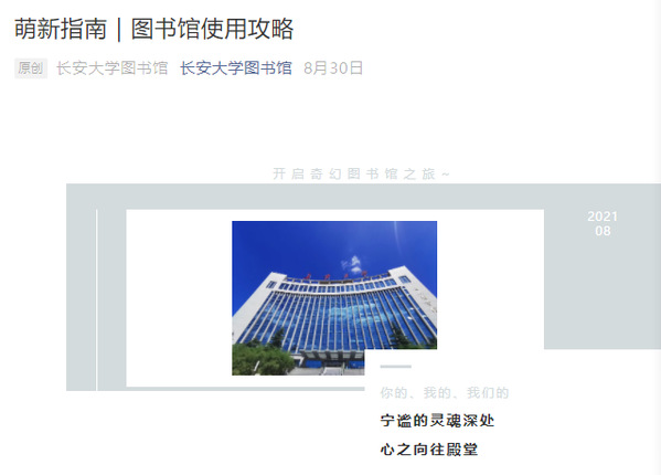 围绕“开展党史学习教育之我为读者推资源”理念,为了更好地服务于学校的教学、科研工作,图书馆实行线上资源推广与新生入馆教育相结合的方式,定期通过微信公众号进行阅读推广,持续、深度、大力整合图书馆使用指南,带领读者深入了解图书馆使用办法,从“新”开始,从需求出发,向读者宣传图书馆各类资源。