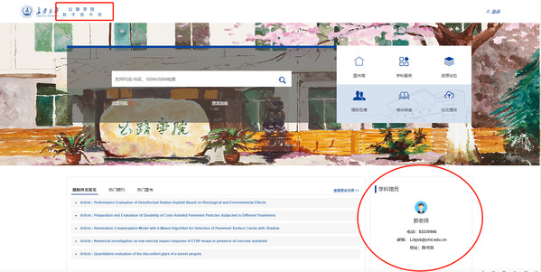 图书馆已完成了运输工程学院、公路学院、汽车学院数字图书馆的建设工作。“学院数字图书馆”主要解决图书馆文献资源到学科的映射、分类以及导航,实现图书馆文献资源到二级学院的精准推送。为用户提供基于学科级别的数字文献服务。