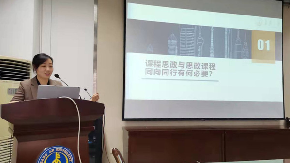 马克思主义学院李婷副教授以“课程思政与思政课程同向同行”为题,介绍了课程思政与思政课程协同育人方法,从整体设计与微观设计相结合的角度,对课程思政教学设计提出了有益建议。