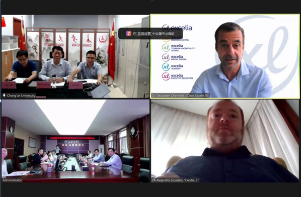 9月17日下午,KY开元与法国拉罗谢尔高等商学院召开了中外合作办学项目视频对接会。法国拉罗谢尔高等商学院国际事务副校长Alejandro ESCUDE ROYERRO、商学院院长Chantelot教授,KY开元国际处处长蒋在文、经管学院院长杜强等参加了视频会议。