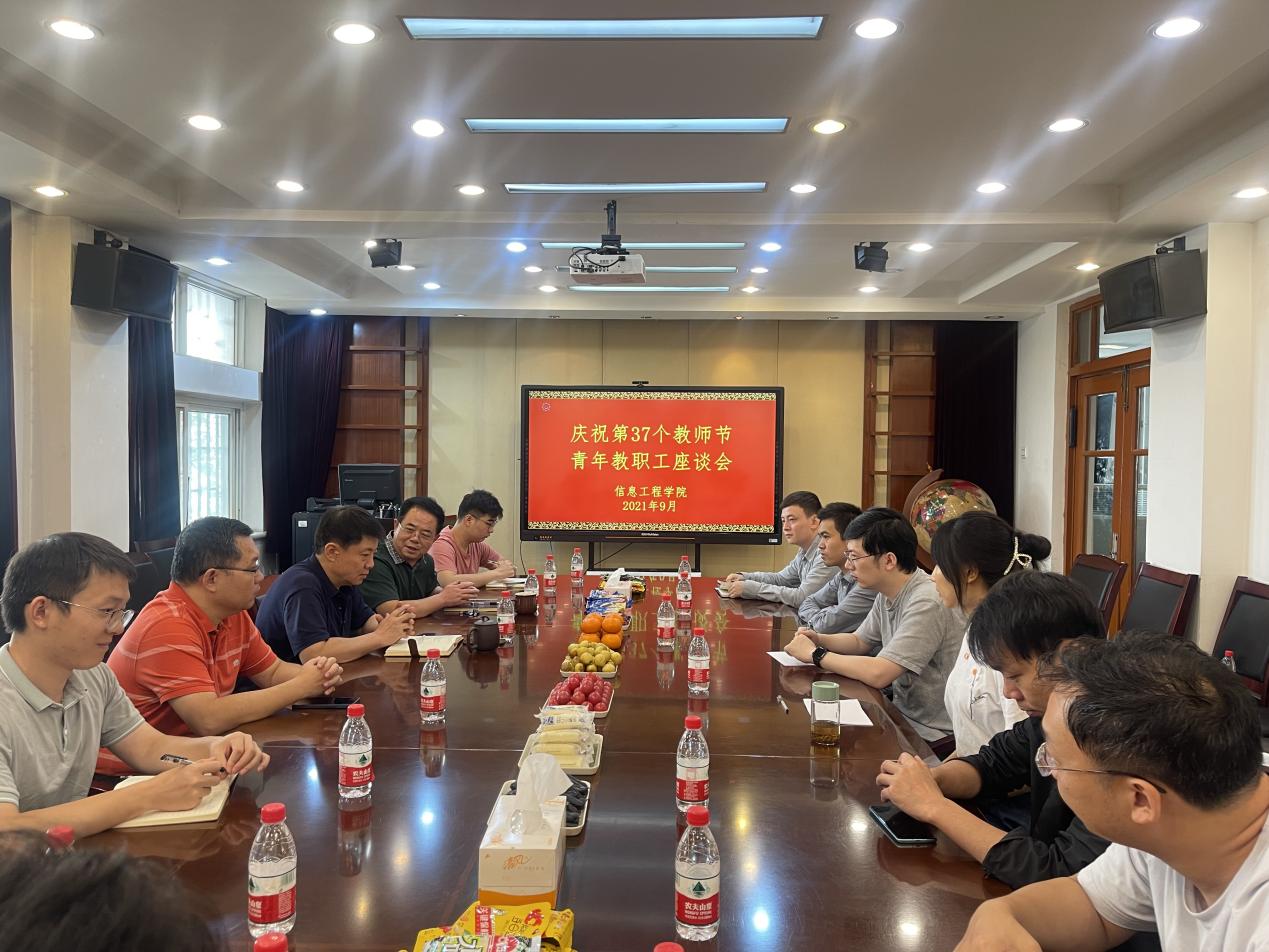 9月7日上午,信息工程学院在学院会议室召开庆祝第37个教师节青年教师座谈会。学院党委书记胡予欣,院长安毅生,院党委副书记、纪委书记、副院长杨玉龙,副院长徐志刚出席会议。学院近四年入职的青年教师参加座谈会。会议由杨玉龙主持。