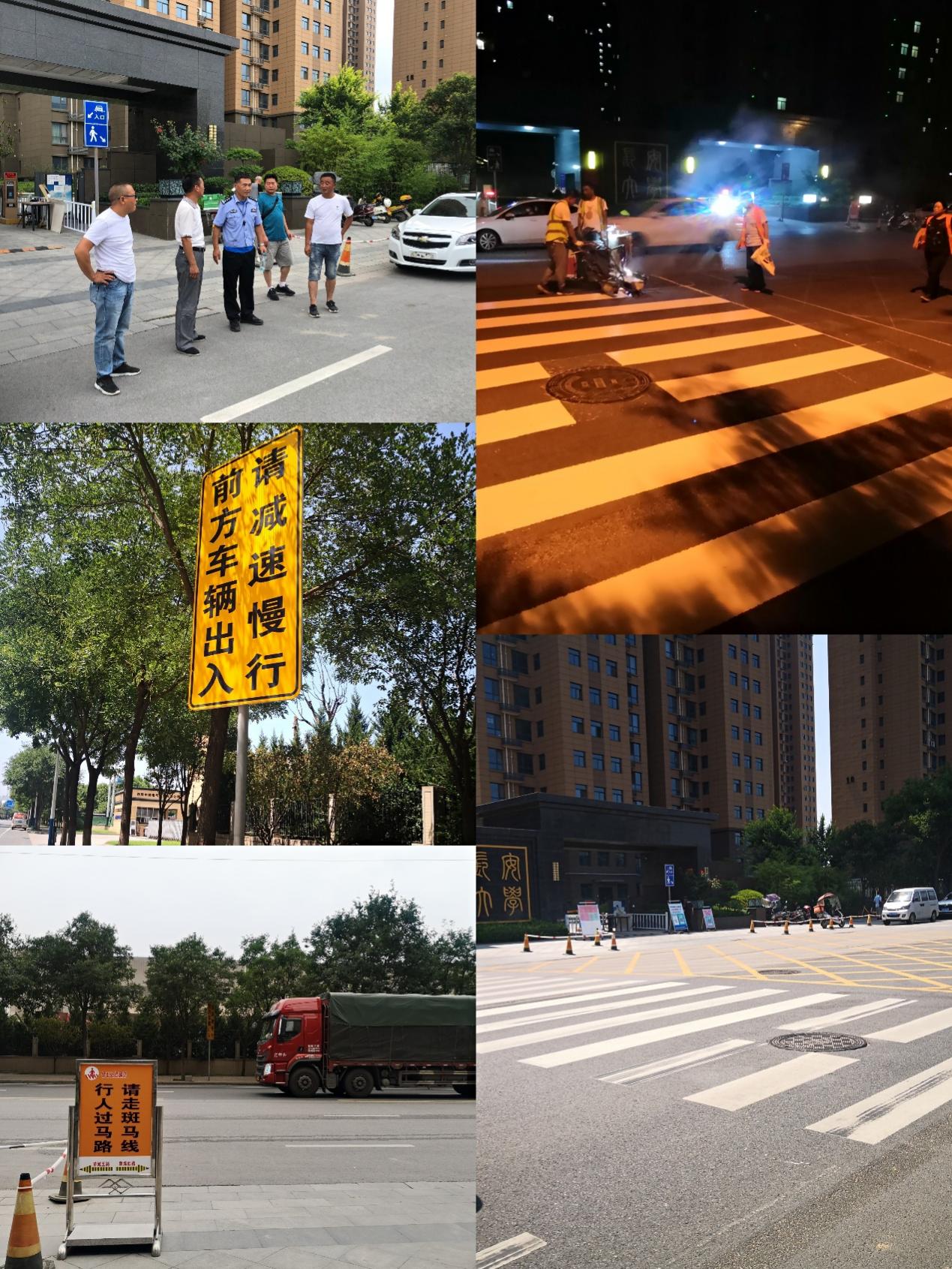 北校区工作用房北门车流量大,且货车较多,教职工出行存在一定的安全隐患,保卫处主动与属地公安机关联系,多方沟通,现场勘查,后经交警草滩中队批准,保卫处在工作用房北门口增划斑马线、设立警示牌,提醒过往车辆减速慢行,礼让行人,极大保障了教职工出行安全。