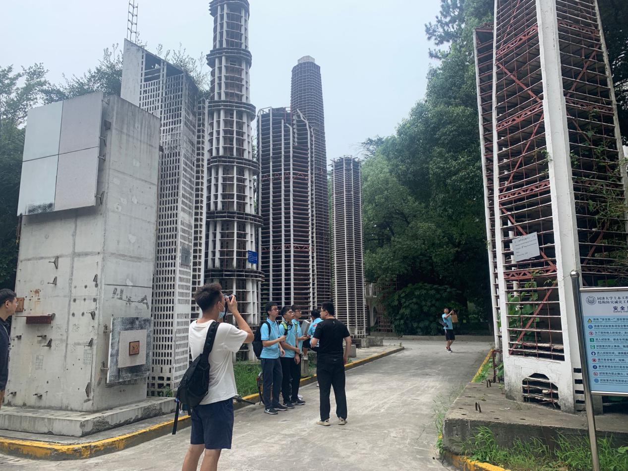 图为实践队参观同济大学抗震实验室