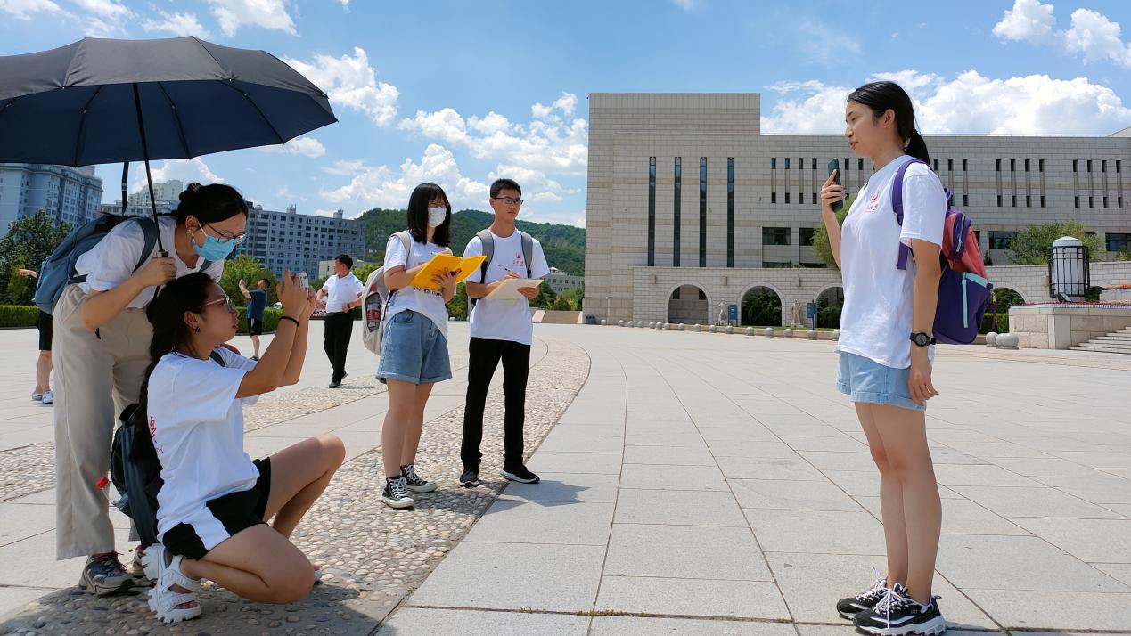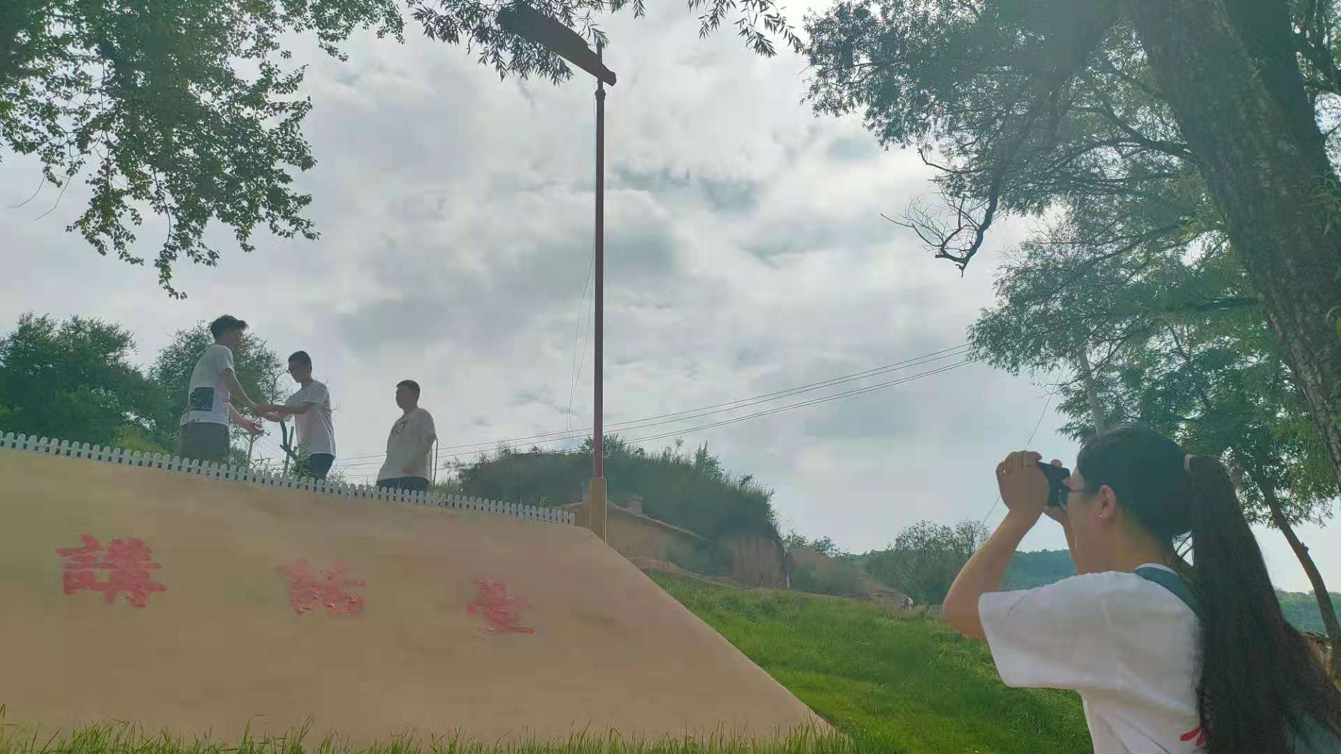 7月10日,实践队员们在甘泉开启了第四站的实践活动。边走边学、亲身体验、观看影像等多形式的了解学习激发了队员们的尝试开展新的教育方式的热情,大家坐在窑洞旁的树墩上热烈讨论起可进行的教育方式。最终,实践团队成员共同决定采用更多元、更本土化、更具感染力的情景剧表现形式在旧址重现历史。在讲话堂,团队成员重新再现了毛泽东“雪地讲话”,扮演毛泽东的吕畅以激昂的语气说出:“今后,我们要与陕北人民团结一起,共同完成中国革命的伟大任务。”结束了情景剧的表演,圆满完成任务,得到在旧址附近居住村民的一致好评。活动结束后,主演吕畅表示:“这是我第一次演情景剧。通过情景剧讲述红色故事,可以在吸引人们注意力的同时,让大家在“情”与“形”中重温历史、汲取红色精神,让党史学习教育更有力度、更具温度。”