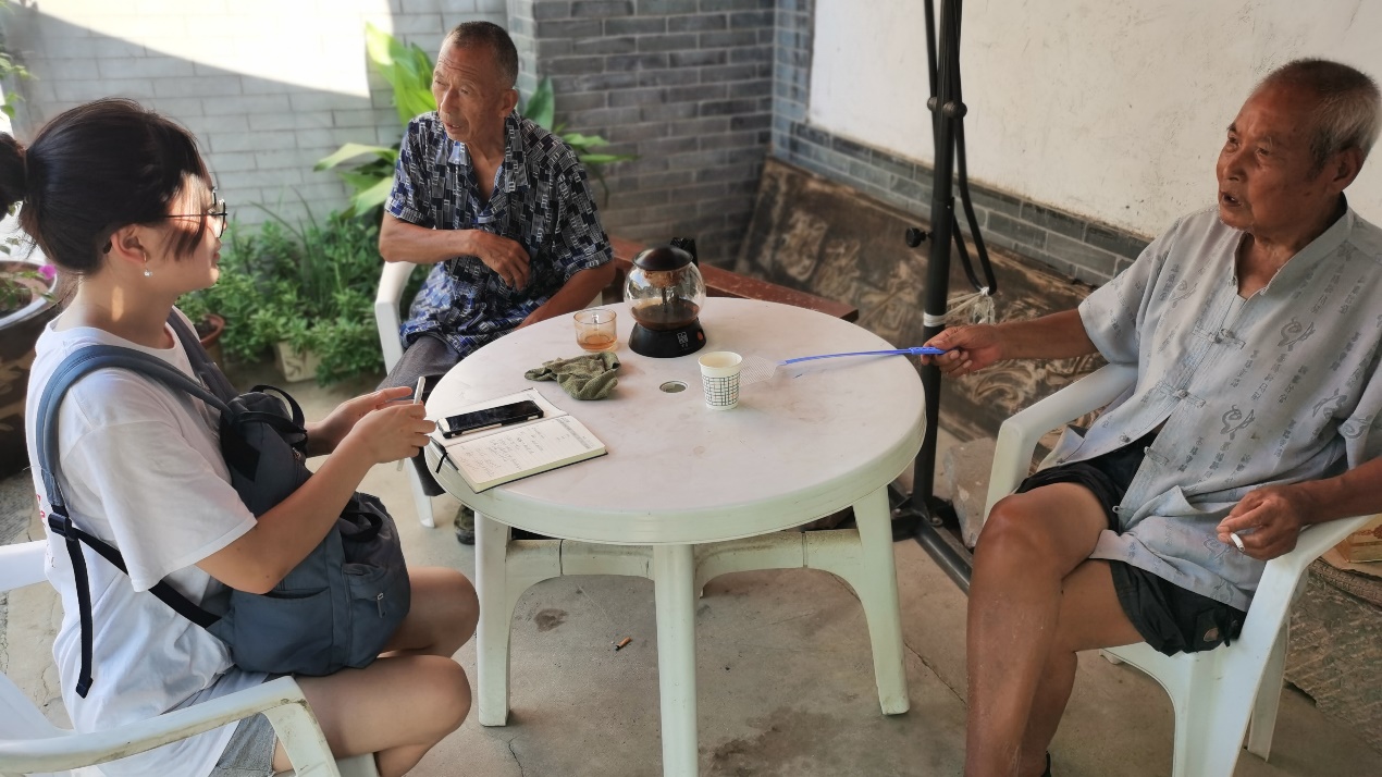 7月11日,实践队员们来到了重走红色交通线的最后一站——安吴战时青年训练班纪念馆,它是抗日青年的旗帜、革命青年的熔炉、中国青运史上的丰碑。实践队员们还走访了当地的老乡,在与一位老乡的交谈中,队员们了解到,当时青训班还会到附近的吴氏陵园进行授课,“柏树林,好课堂,蓝天为帐山作墙,学为抗日,熔炉炼成钢”。实践队员们聚精会神地听着老乡讲述,不时追问一些细节。通过这次的采访,实践队员们对青训班的学习状况,学习方式和学习场所等有了更全面的认识,也再次被学员们的拳拳爱国热忱所感动。