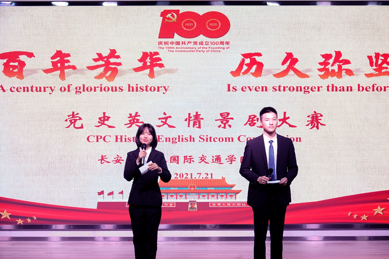 7月21日,长安都柏林国际交通学院在鸿远教学楼四楼报告厅举办“百年芳华历久弥坚”党史英文情景剧大赛。校党委宣传部常务副部长郗波,校党史学习教育第二指导工作小组成员张英,学院党总支书记、院长汪海年,党总支副书记、副院长姚以亮,浸入式英语夏令营特聘顾问李光咸以及夏令营外籍教师代表Christie出席并担任比赛评委。来自学院12个班级的100余名学生参加了本次比赛。