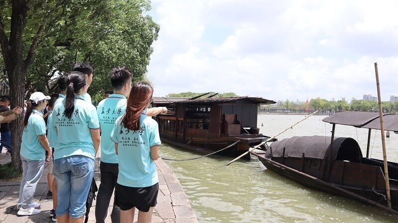 百年之前,革命的种子在嘉兴红船悄无声息地孕育,百年之后,人民在金色的稻浪中追寻那段不朽的峥嵘岁月。7月20日上午九点,实践队来到浙江嘉兴南湖革命纪念馆继续深入探寻党的初心使命,明晰青年责任担当。站在湖中游船上,波光粼粼,蝉鸣阵阵,远远望着停滞在湖中的湖心岛,队员们脑海中不禁浮现出百年前一大代表们辗转来到浙江嘉兴这南湖之上,泛舟于“轻烟漠漠雨疏疏”的画面。
