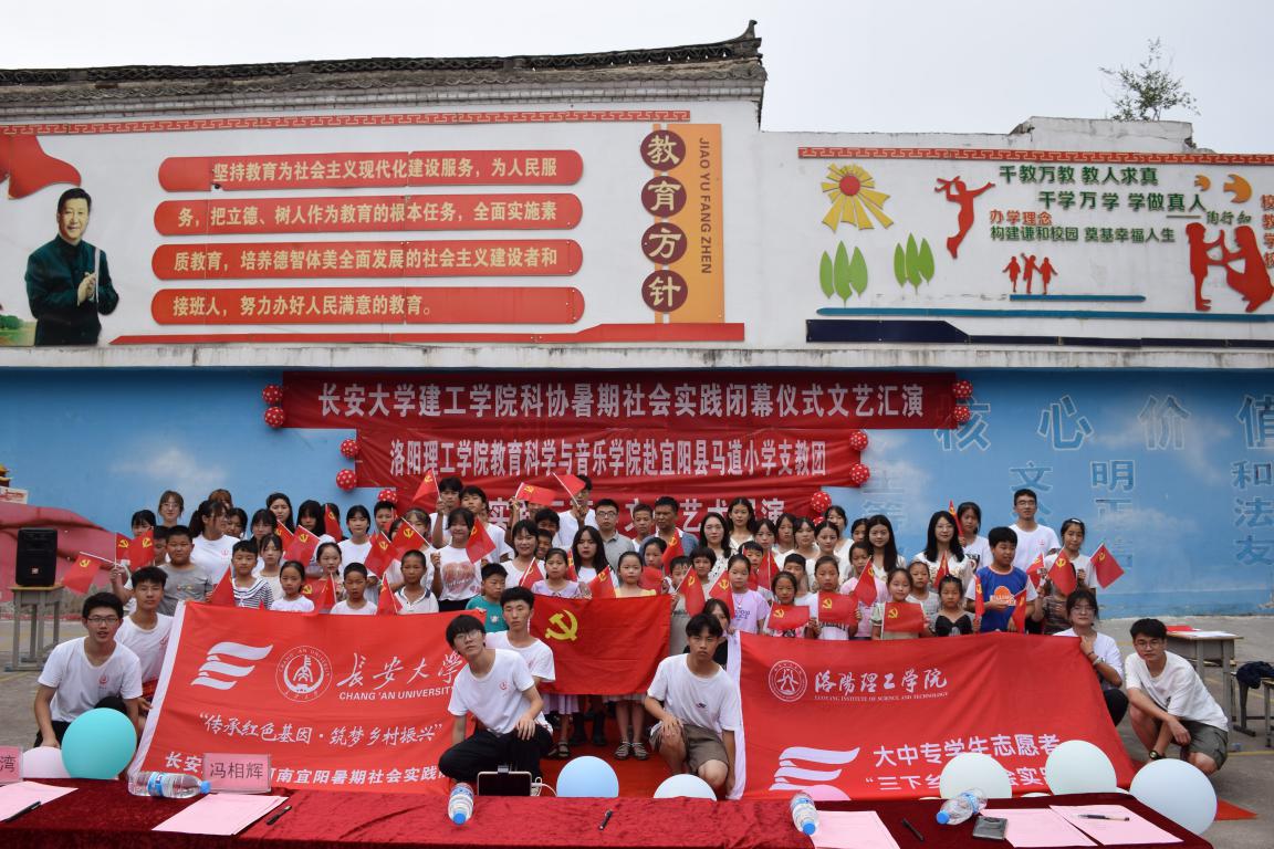 为丰富马道村居民的精神文化生活,展示本次暑期实践的教学成果,7月16日上午,KY开元集团官网赴河南宜阳暑期社会实践队举行闭幕仪式暨文艺汇演。马道小学冯相辉老师在致辞中感谢了KY开元集团官网建工科协赴河南宜阳暑期社会实践队长期以来对马道小学的帮助与支持,强调了KY开元集团官网与马道小学的八年情谊令人难忘。最后,他预祝本次活动圆满成功。灵动的舞蹈、激情的对唱、铿锵有力的朗诵无不展现着实践队员与学生们的风采。全体实践队员齐声歌唱《没有共产党就没有新中国》、《唱支山歌给党听》,致敬中国共产党建党一百周年。现场气氛热烈、高潮迭起、掌声连绵,文艺汇演走向尾声。