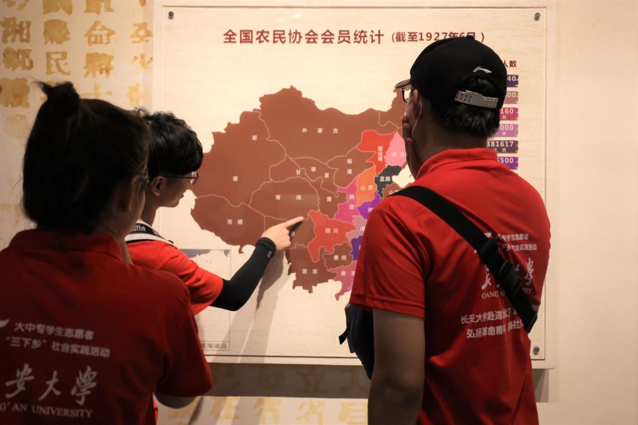 实践队队员在讨论农民革命运动时期的全国农民协会会员数量