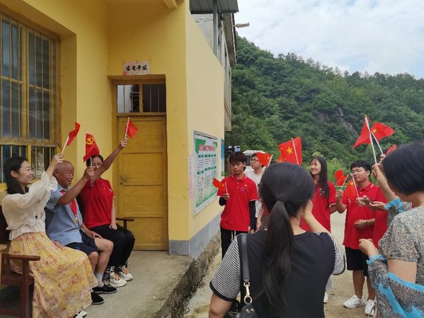 7月13日上午,实践队一行来到“光荣在党50年”高先江、余世璋、田连智老党员家中并送上慰问品,队员们详细询问老党员们的健康和生活情况,聆听老党员们讲述鲜活的革命故事。此次探访之旅在歌曲《没有共产党就没有新中国》中圆满结束,嘹亮的歌声在层叠的大山中不断回响。