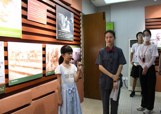 在光荣院,实践队选择了大别山本土红色民歌《八月桂花遍地开》,以红色老歌致敬革命老兵,表达实践队员对老战士们言传身教的感激,也是对“传承革命精神、讲好革命历史”承诺的实践。红色精神在新县的当代传承中,“小小红色讲解员”的生动讲解,还有智能机器人讲解员大量史料知识的呈现,都是当代新县人民对革命历史发自内心的敬重与传承。