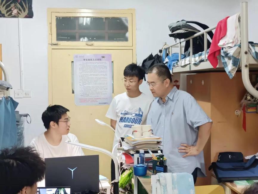 学院副院长茹锋、段晨东、龚贤武,先后多次走访学生宿舍,搭建线上沟通平台,尤其是与党员宿舍、学困生宿舍等的学生进行了深入交流,了解了他们在宿舍的学习和生活状况,并鼓励同学们摆正学习心态,加强专业知识学习,提升专业技能,为以后的高质量就业打好基础。