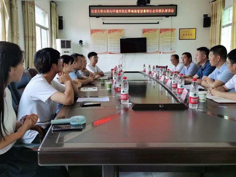 为深入了解学院毕业生就业质量,掌握学院选调生发展情况,进一步推进毕业生就业工作,7月16日,水环学院党委书记邓红章、党委副书记王妍带队前往周至县翠峰镇开展驻村选调生回访工作,深入了解选调生成长状况,听取工作情况反馈,并与翠峰镇党委副书记、镇长李伟,翠峰镇人大主席郝晓鹏等相关负责同志,我院选调生赵浩及暑期社会实践团队进行了座谈。