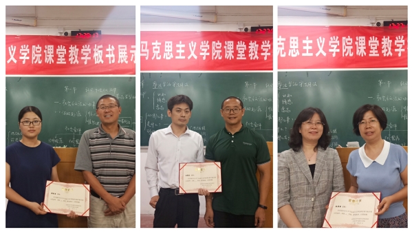 在展示中,各位老师按照抽签顺序依次上台展示,教师们将精心组织和设计的教学内容通过工整美观的课堂板书充分展示出来,在注重理论阐述的同时兼顾互动环节,体现了马克思主义学院教师良好的精神风貌,整个竞赛过程组织严密,有条不紊。同时,本次活动特别邀请了首届全国高校思想政治理论课教学展示活动特等奖获得者、马克思主义学院李婷老师作了板书示范教学。