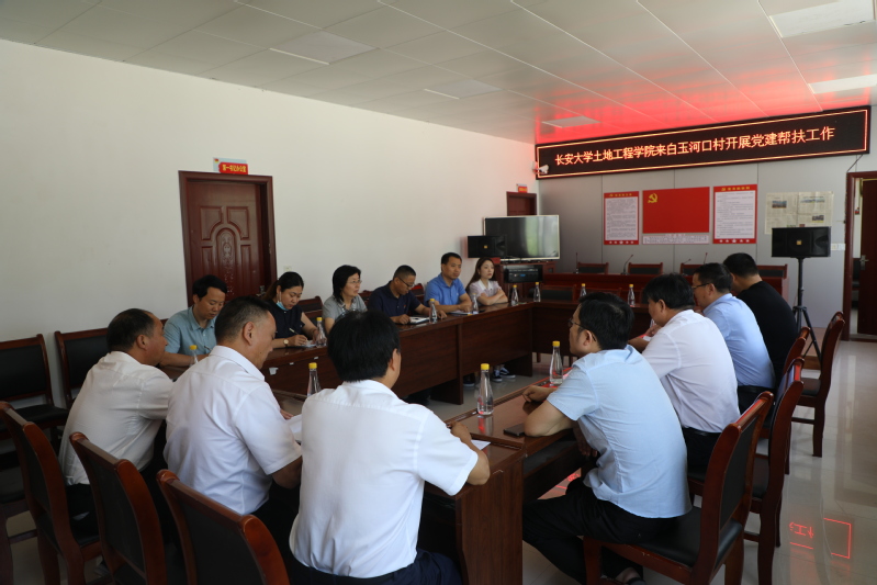 6月30日上午,调研组一行来到位于金丝峡镇的学院结对帮扶村——白玉河口村。随即召开座谈会,金丝峡镇有关领导,村党支部委员会、村民委员会成员参加座谈会。