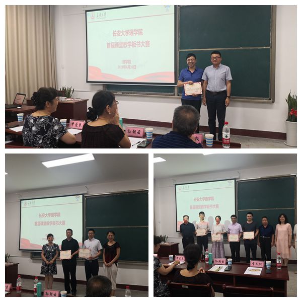 为切实提高学院教师课堂教学基本功,以赛促教,树立教学能手标杆典型,结合学校相关工作安排,6月30日下午,理学院首届课堂教学板书大赛在南校区北院基础课楼317室成功举行。国家级教学名师、全国模范教师、公路学院申爱琴教授,教育部高等学校统计学专业教指委委员、全国和陕西省青教赛理科组评委、理学院马江洪教授,陕西省教学名师、信息工程学院孙朝云教授,陕西省教学名师、学校督导组组长李民权教授,理学院张红艳教授受邀担任本次大赛评委,申爱琴教授任评委组组长。大赛由副院长商泽进主持,院长宋学力及部分教师现场观摩了比赛。
