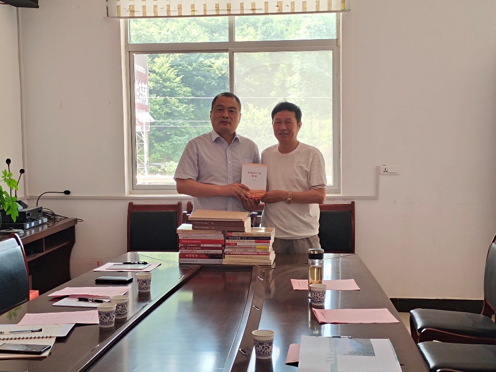 建筑学院党委书记李险峰向店坊河村赠送了党史学习的系列书籍和KY开元集团官网纪念宣传册。