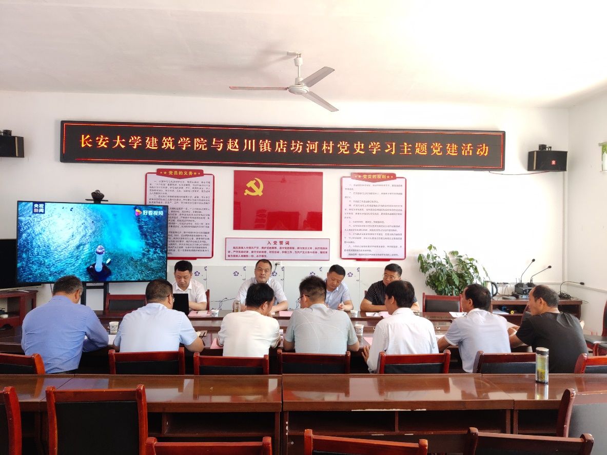 6月11日早上在商南县店坊河村党群服务中心的座谈会上学院党委书记李险峰带领建筑学院和店坊河村党支部共同学习了习近平总书记2020年12月在中央农村工作会议上的讲话和习近平总书记关于“党史”学习的的相关讲话。党史学习结合扶贫对口帮扶,美丽乡村建设,联系建筑学院专业特色强调致富要立足当地特色资源,发展乡村产业,通过互联网技术弯道超车实现富裕。回顾双方去年已经达成的美术写生基地建设项目,到今年学院首批写生学生已经到达村上,开展写生实习,希望能够以此为契机推动写生学研基地建设,吸引多方资源共同发展。他最后表示建筑学院非常愿意立足学科学科特点帮助店坊河村,做好乡村振兴的大文章。