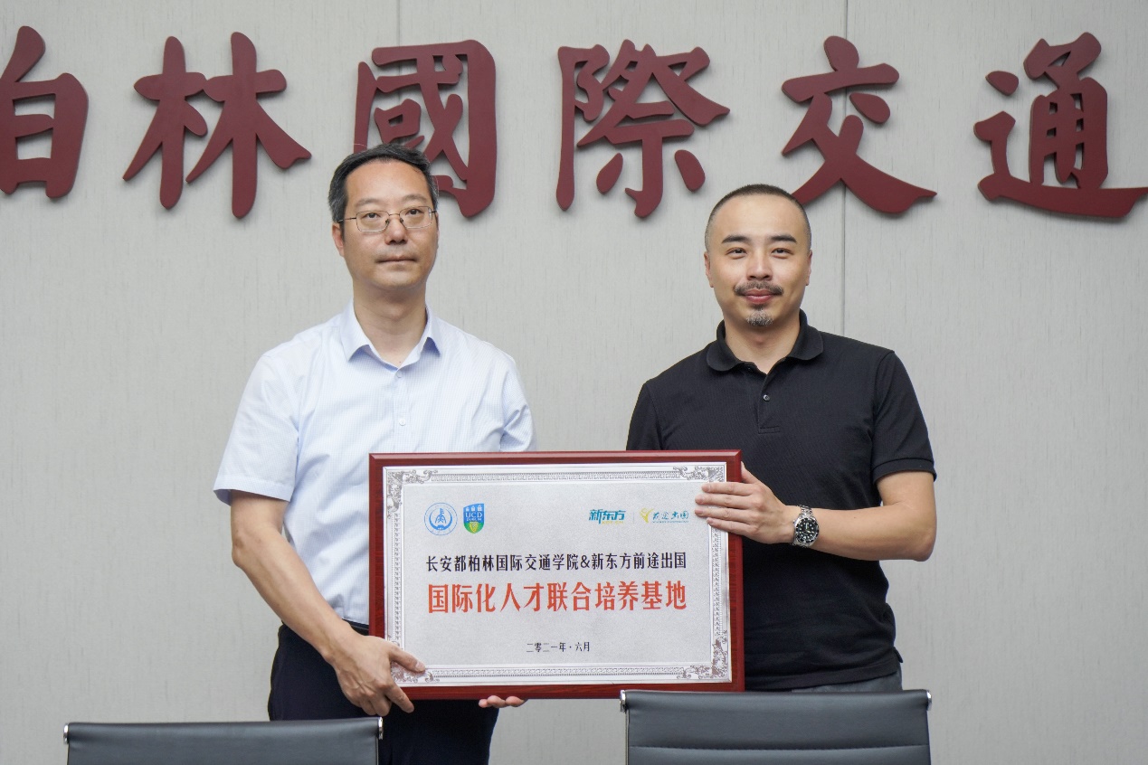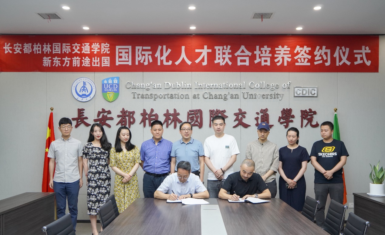 6月9日,长安都柏林国际交通学院-新东方前途出国国际化人才联合培养协议签约仪式在鸿远教学楼四楼会议室举行,学院党总支书记、院长汪海年和新东方前途出国助理副总裁、陕西分公司总经理卢一航出席了签约仪式。仪式由学院党总支副书记、副院长姚以亮主持。