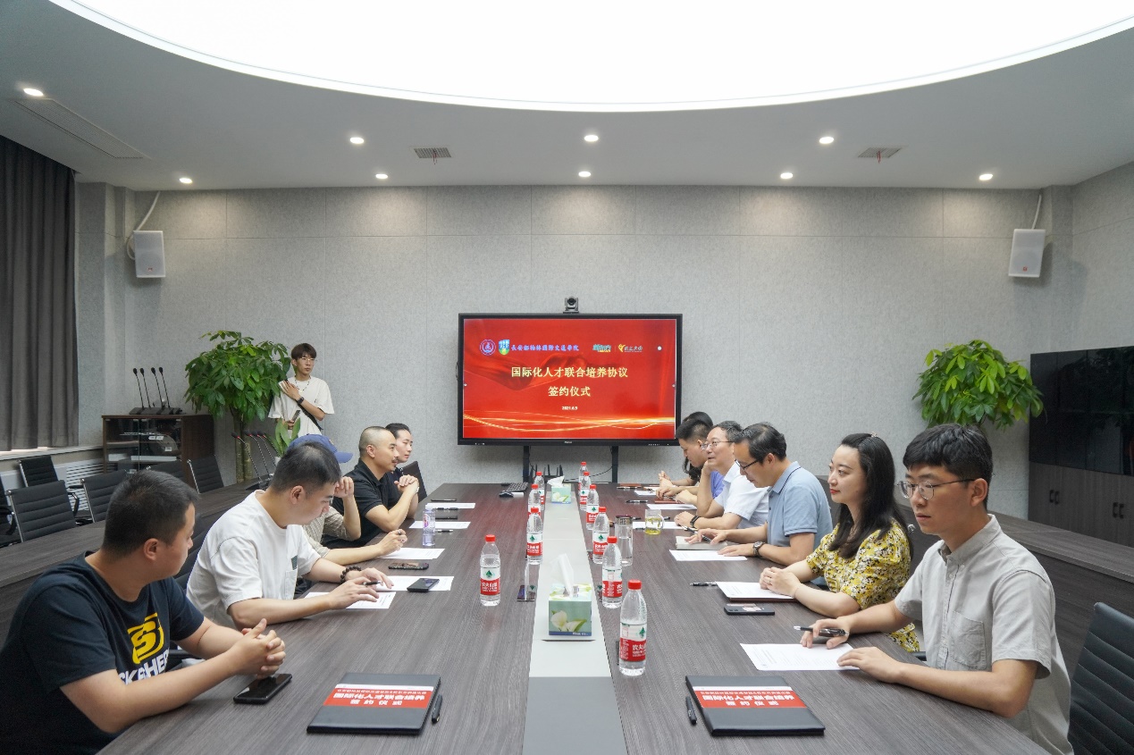 交流研讨后,汪海年与卢一航代表双方共同签署了国际化人才联合培养协议,进行国际化人才联合培养基地授牌。