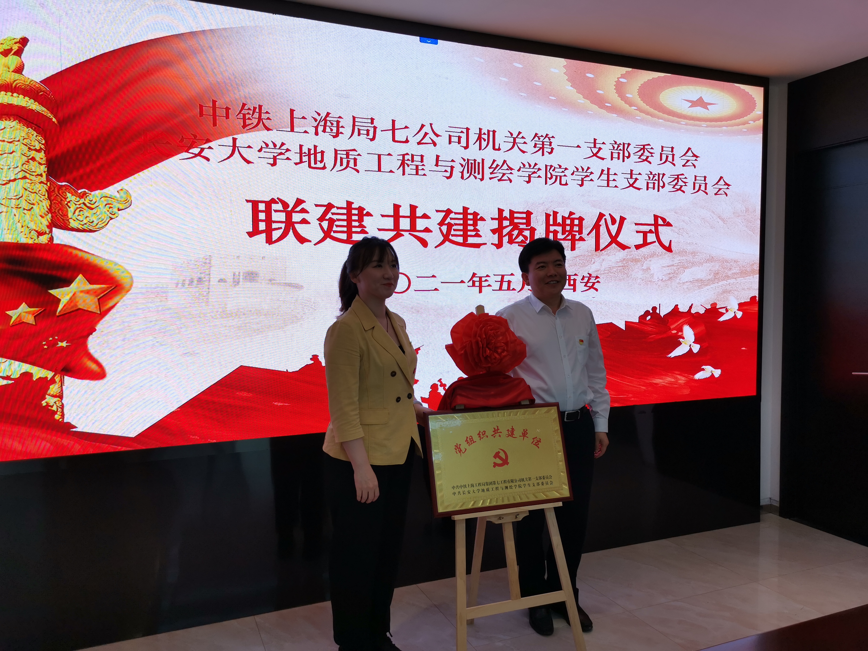 贾东荣和潘迎分别致欢迎词,并介绍了双方单位的基本情况、优势特色和支部党员情况与建设情况。随后,双方为共建党支部揭牌。