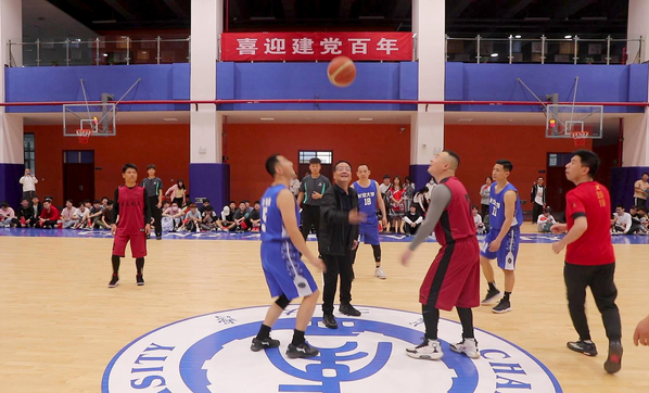 校党委副书记徐引正为篮球赛开球