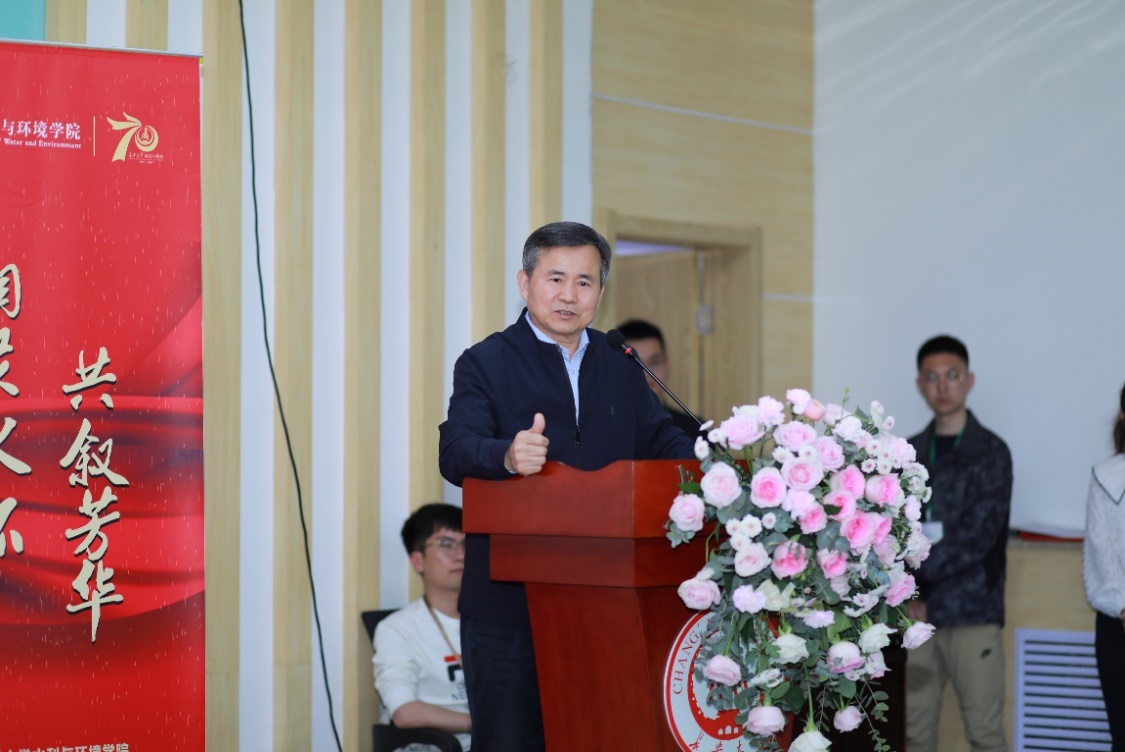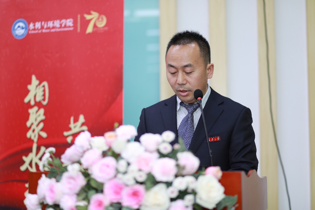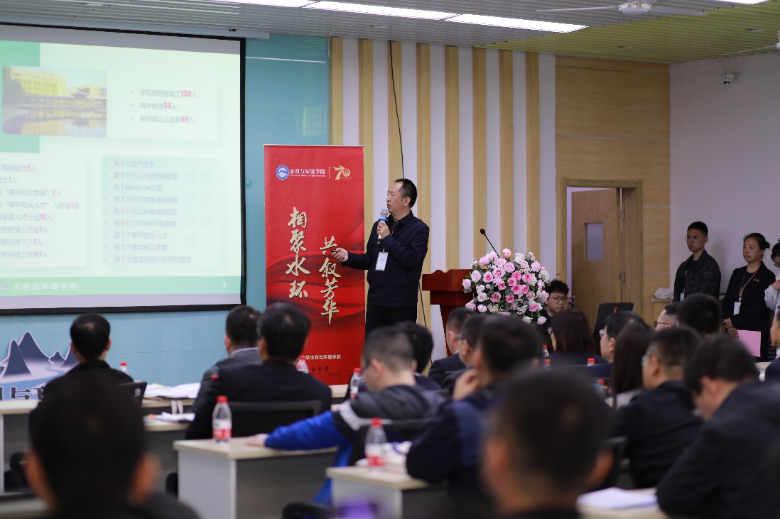 学院院长白波向与会院友、老师、同学们介绍了学院发展情况。他从学院基本情况、师资队伍、学科建设、专业建设、科学研究、人才培养、合作交流及社会服务等8个方面向所有院友们系统的介绍了学院情况,并表示学院未来一定密切契合国家战略发展,为国家生态文明建设、“一带一路”建设等国家重大战略做出更大贡献,培养出一大批“学知识、能创造、有担当”的水环学子。