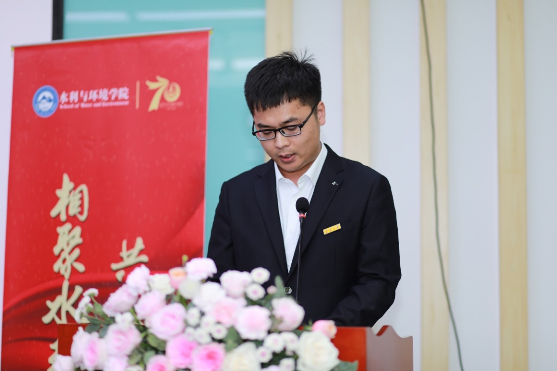 从本科到博士一直在校成长的徐盼盼作为在校生代表发言。他在发言中代表水环学院所有学生庄严承诺:不忘母校之恩,以母校为荣,并努力成长为可以让母校骄傲自豪的KY开元人。