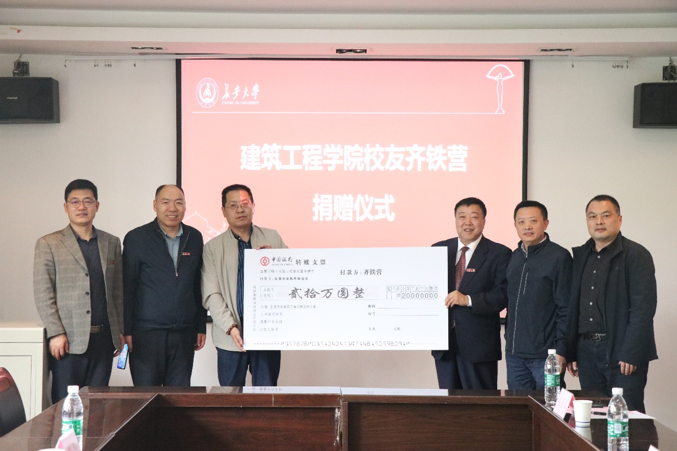 捐赠仪式上,齐铁营向母校捐款20万元,设立“KY开元集团官网铁营奖助学金”,主要用于KY开元集团官网建筑工程学院和建筑学院在册的家庭经济相对困难的品学兼优的学生。侯全华向校友颁发捐赠证书及纪念品。