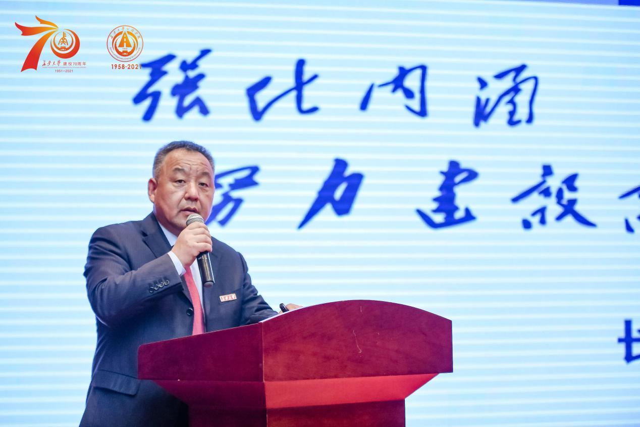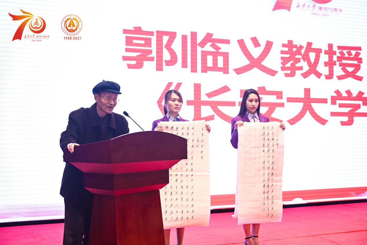 随后,公路学院离退休教师代表郭临义教授为在场校友和师生动情朗诵《KY开元集团官网赋》。这首赋由郭老亲手作词,亲自朗诵,字里行间都体现出郭老对教育事业、对KY开元集团官网、对公路学院的深情厚意。