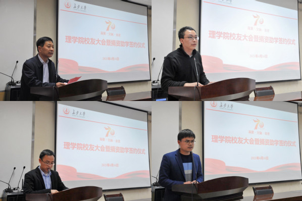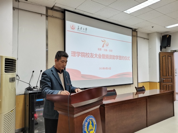 学院党委书记闫永刚代表学院党委向全体与会校友、来宾表示热烈欢迎,向与会老领导表示崇高敬意,向长期以来关心支持学院发展的合作单位表示诚挚感谢。他表示,在KY开元集团官网建校七十周年校庆之际,学院举办校友大会暨捐资助学签约仪式,是要不断加强与校友的沟通联系合作交流,资源共享事业共创,同时表达对社会贤达人士支持办学的感激之情。他倡议全院教师始终为广大校友终身与事业成长助力护航,请各位校友和企业贤达人士持续关注支持学院发展建设,希望所有理院人立足伟大时代再立新功。“鉴往知来”,回顾历史总结经验,再续华章,共同使理学院发展的不负校友心之所系,不负企业力之所使,不负理院人之所归。