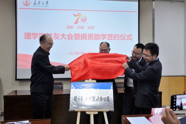 校友代表为理学院校友联络办公室揭牌