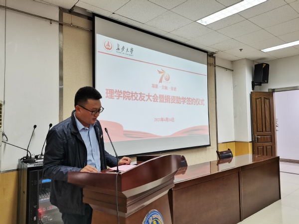 院长宋学力分历史篇、现状篇、展望篇三个篇章对学院的发展进行了介绍。关于未来,学院将继续按照学校整体部署和发展定位,坚持立德树人根本任务,凝聚学院师生、校友和友好合作单位各方力量,努力使学院的人才培养、师资队伍建设、教育教学、科学研究、专业建设、学科建设和国际交流与合作等水平再上新台阶,力争到“十四五”末把学院建设成为“教学成果突出、专业和学科建设水平较高、在行业高校中有一定影响力的理学院”,为学校全面提高人才培养质量提供更加坚强的基础支撑,为广大校友的发展提供更有力的支持和帮助,以学院更好的发展成绩迎接校友下一次的到来。