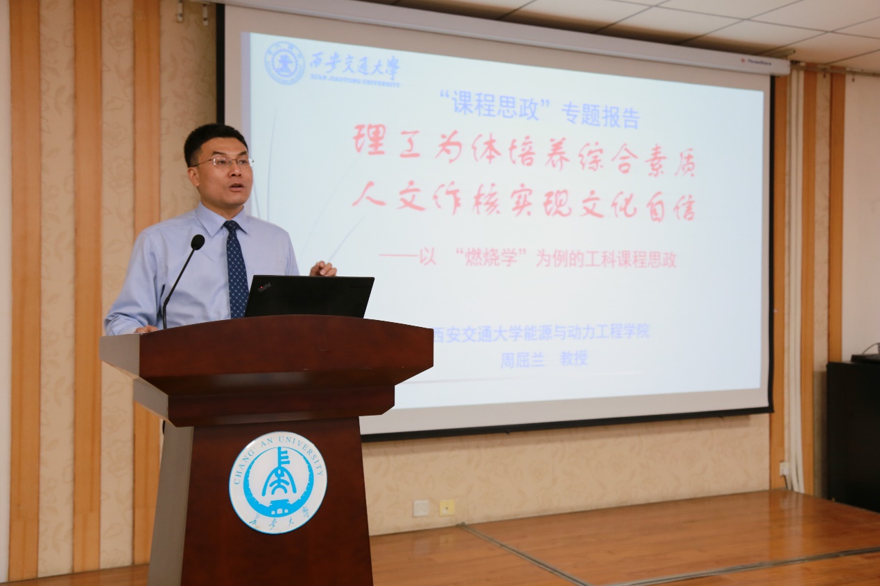 为贯彻落实《高等学校课程思政建设指导纲要》(教高〔2020〕3号),全面推进学院课程思政建设,指导和帮助广大教师深入挖掘专业课程思政元素,提升育人实效,实现专业课程与思想政治理论课同向同行、协同育人,结合编写2020版本科课程教学大纲、实验教学大纲要求,学院特邀请西安交通大学能动学院周屈兰教授给全体教师作了题为《理工为体培养综合素质,人文作核实现文化自信——以“燃烧学”为例的工科课程思政》专题报告。报告会于4月7日晚在本部东院地学科技大厦313室进行。学院党委书记邓红章主持,学院全体教职工参会,认真聆听了专题报告。