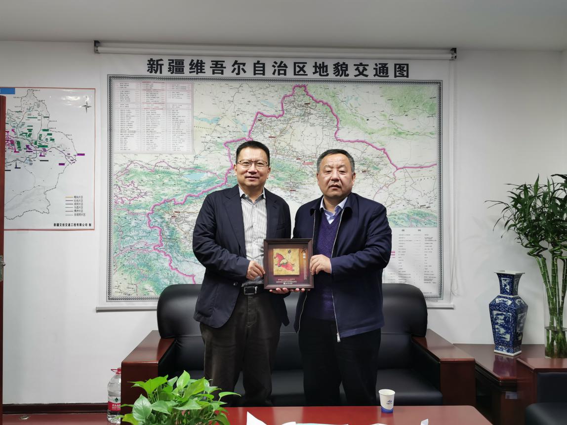 会谈过后,陈建勋先后走访新疆维吾尔自治区交通运输厅综合管理处处长陈建壮、建设管理处处长孙宪魁,新疆交通运输综合行政执法局工程质量监督执法支队党委书记、支队长徐玉春,双方就科研攻关、成果转化、人才培养等方面合作事宜进行深入交流沟通。