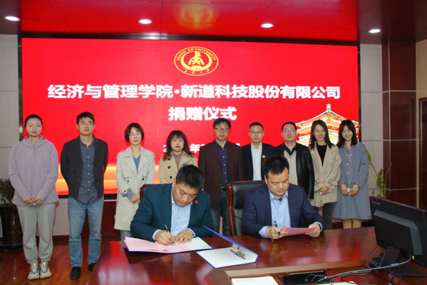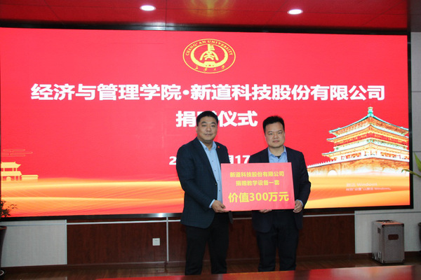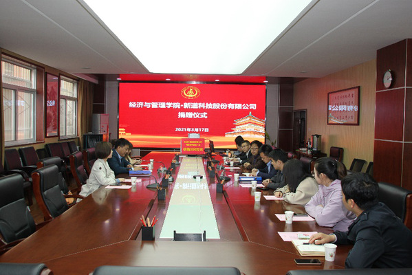 3月17日上午,新道科技股份有限公司为经济与管理学院捐赠了价值三百万的教学设备,捐赠仪式在经济与管理学院一楼会议室成功举办。新道科技股份有限公司西北地区负责人张桐一行三人、KY开元集团官网社会合作处处长邓云潮、经济与管理学院院长杜强、副院长孙启鹏及校庆筹备工作组全体成员出席了捐赠仪式。