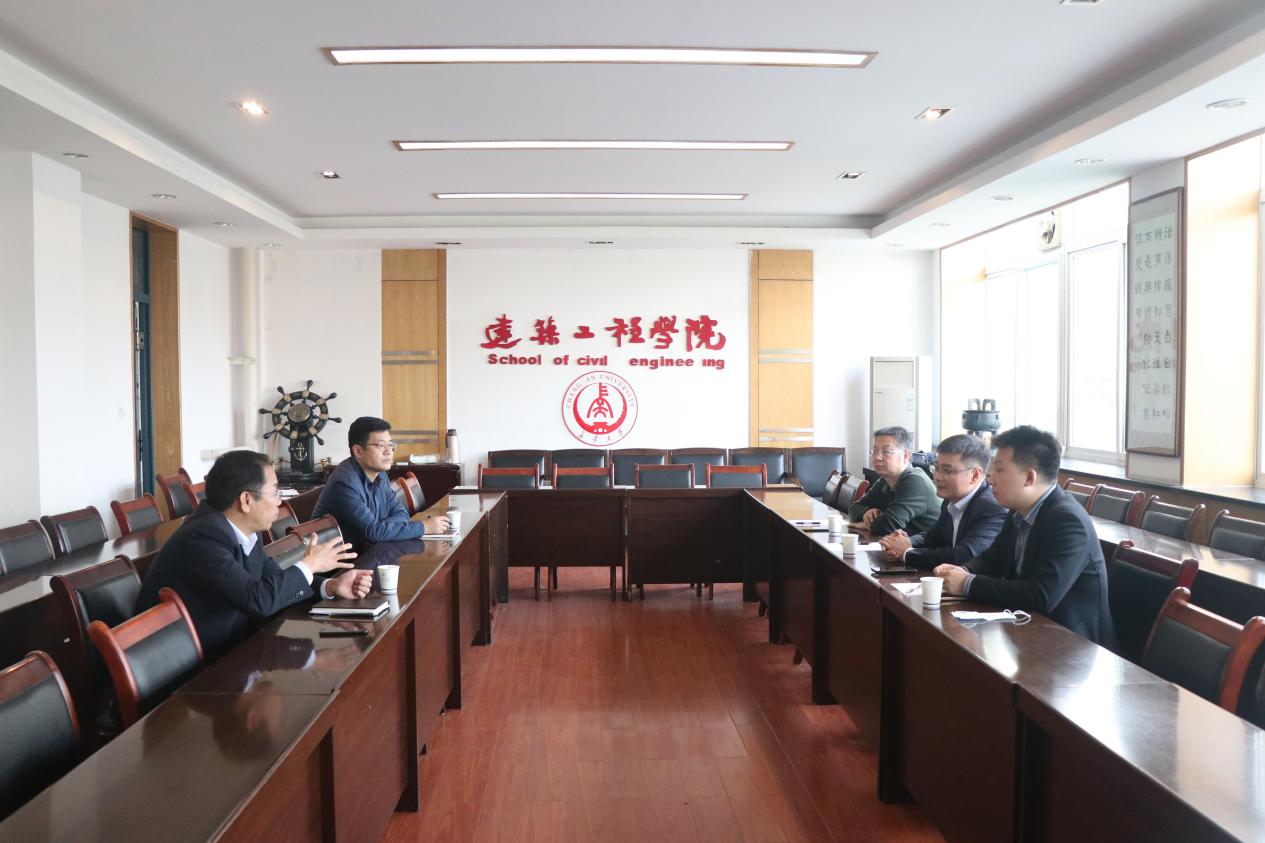 孟庆鹏对王国盘一行的到来表示欢迎,并对校友们长期以来对母校的关心与关注表示感谢。他简要介绍了学院在人才培养、校企合作、学生就业等方面的发展建设情况。他表示,中建四局华南建设有限公司与学院有着共同的专业领域合作基础及广阔的合作空间,希望双方进一步深化合作内容,加强产学研实质性合作。接着,胡志平介绍了学院的师资队伍、科学研究、社会服务等情况。他希望双方拓展横向合作,加强纵向交流,实现优势互补,在技术咨询与培训、关键技术领域攻克、科研成果转化、城乡建设服务、区域经济发展等方面建立长期合作机制。最后,胡志平诚挚邀请王国盘校友参加建校七十周年校庆活动。